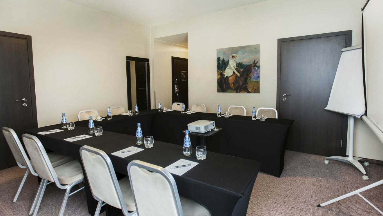 The business suite at the Kossak Hotel was created for intimate business meetings. The space offers a comfortable conversation area and a fully equipped workspace, providing a discreet environment for private meetings with business partners. The elegant interior and view of the Wawel Castle create a professional atmosphere, ideal for important discussions, negotiations and strategic planning.