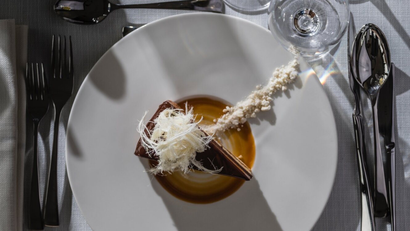 FOREST FRUITS IN RED WINE / SWEET POTATO MOUSSE / BAKED POTATO / HAZELNUTS