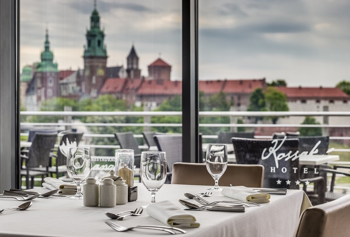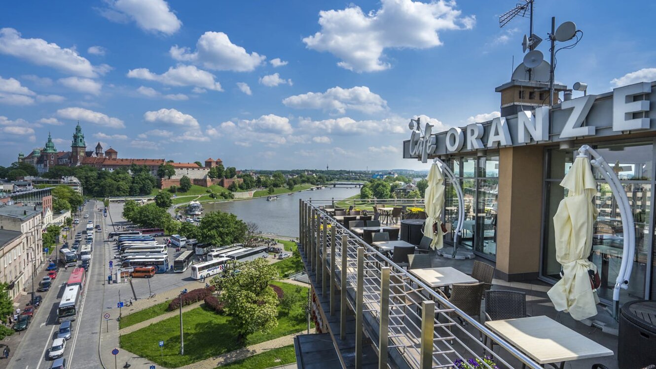Cafe Oranżeria zasługuje z pewnością na miano najniezwyklejszej restauracji w Krakowie. Lokal znajduje się na dachu Hotelu Kossak. Przeszklone wnętrze pozwala na rozkoszowanie się pięknym widokiem na Wawel, Stare Miasto i Bulwary Wiślane, jakiego nie obejrzycie w żadnej innej restauracji w Krakowie. Dodatkowo od wiosny do jesieni otwierany jest taras Restauracji, gdzie w promieniach słońca można cieszyć się serwowanymi daniami i wyjątkową atmosferą.